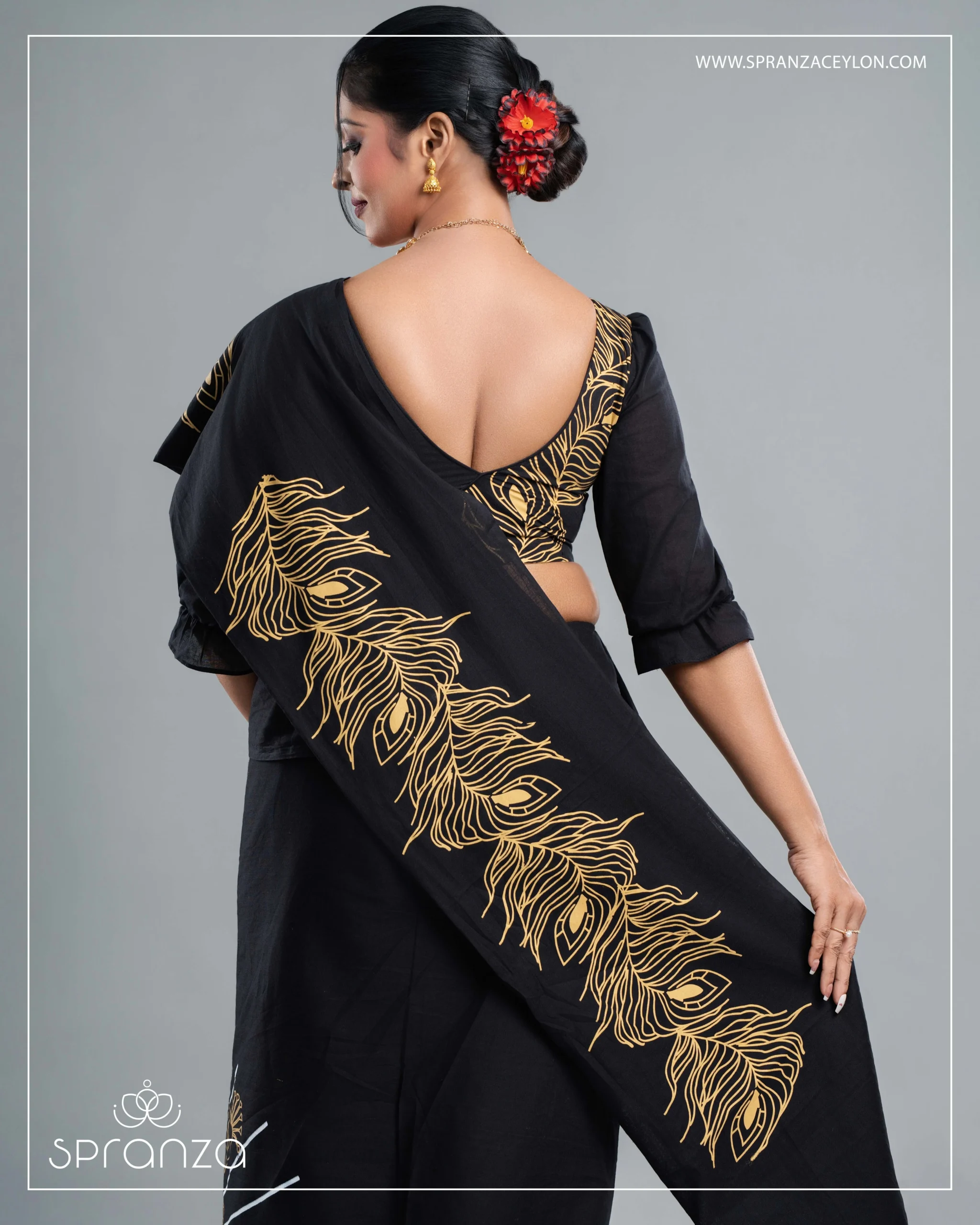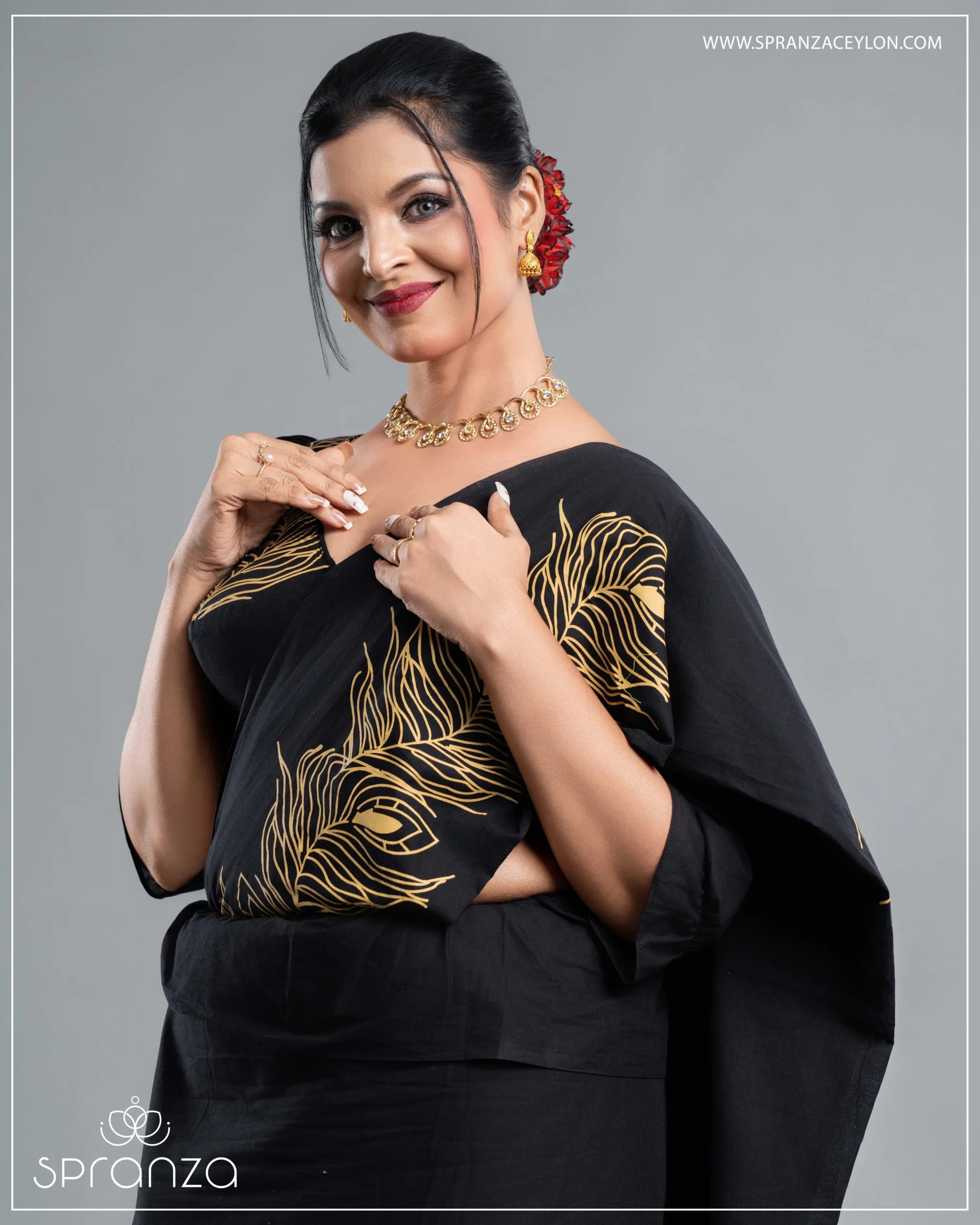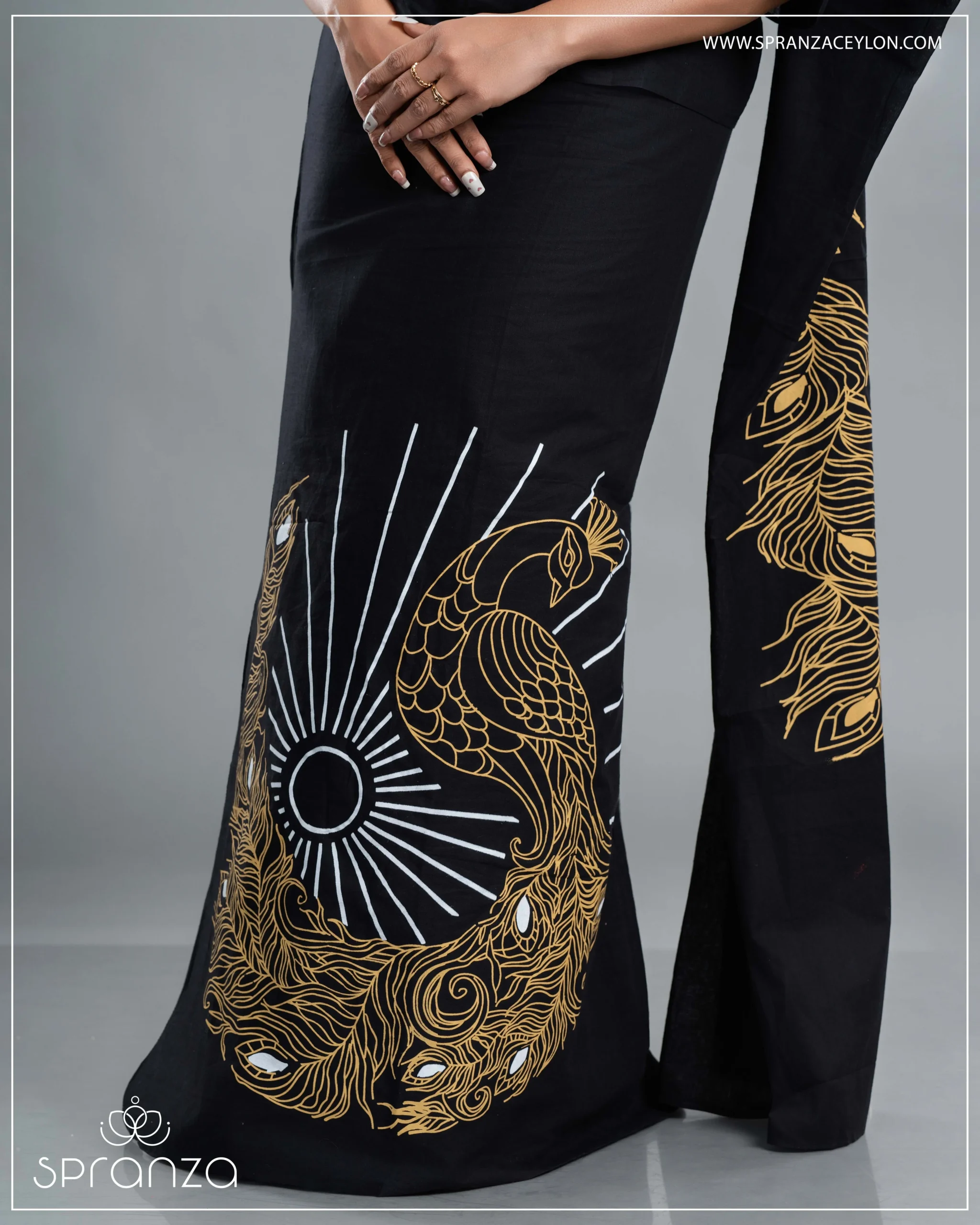 This saree is crafted with rich batik artistry and modern patterns that elevate your everyday style. Perfect for office wear, festive moments, casual outings, and weekend plans. Match it with elegant accessories and classic heels for a refined look. Add this one-of-a-kind black golden batik saree to your wardrobe — its bold color and intricate design are truly hard to find.